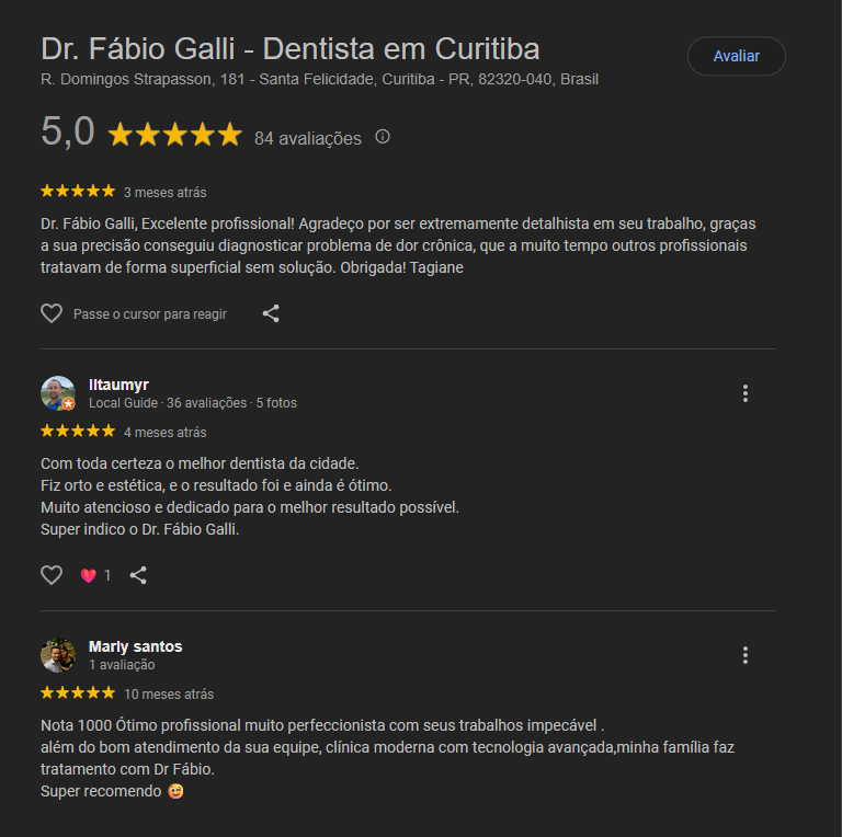 E desta forma, com muito empenho e dedicação, Dr. Fábio Galli está em constante evolução no caminho da Odontologia para transformar o sorriso das pessoas e o mundo em um lugar mais belo e saudável.